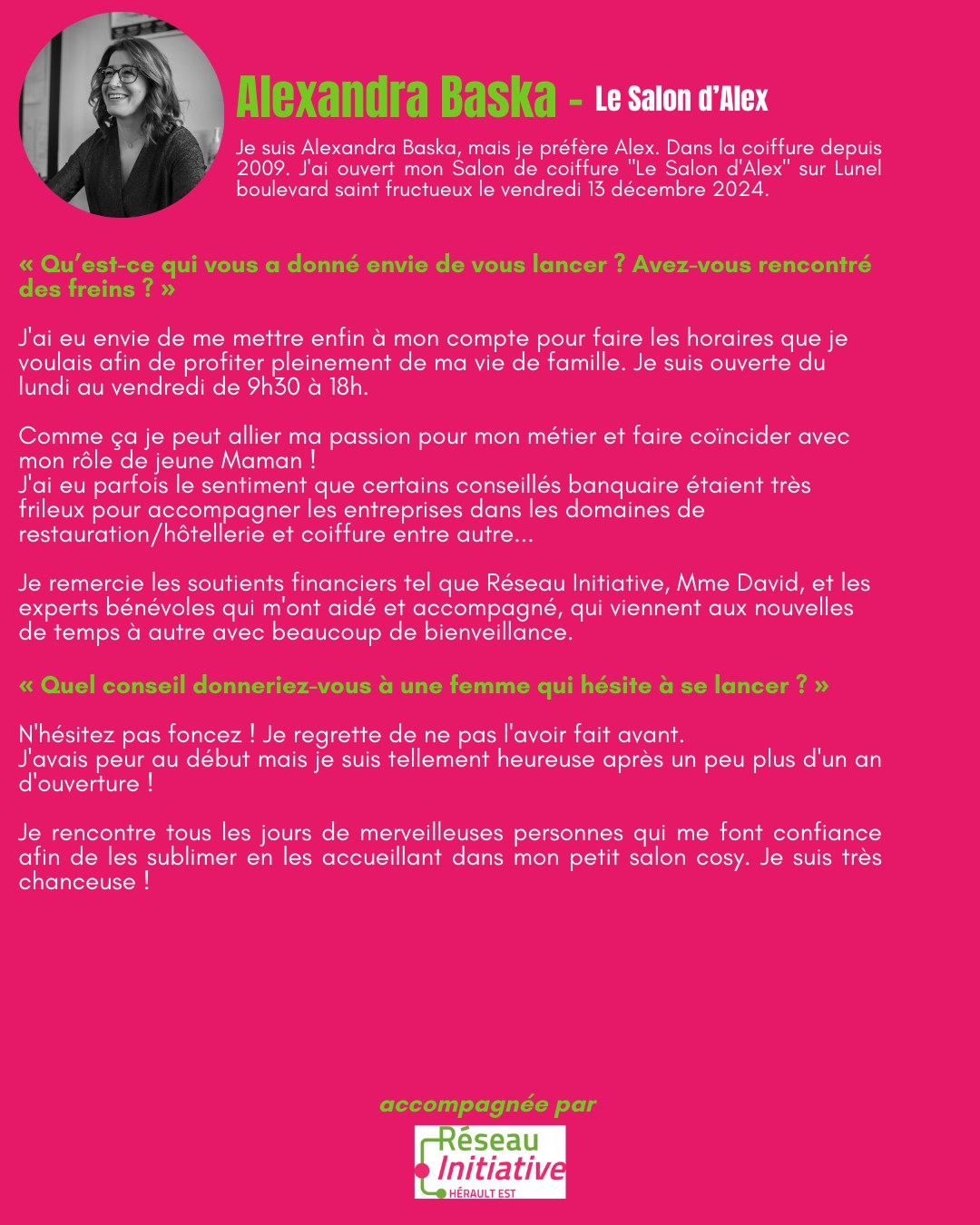 Et celui d’une coiffeuse passionnée qui a relevé le défi de reprendre un salon de coiffure pour y développer sa propre vision du métier et offrir à ses clients une expérience qui lui ressemble : Le Salon D'Alex.